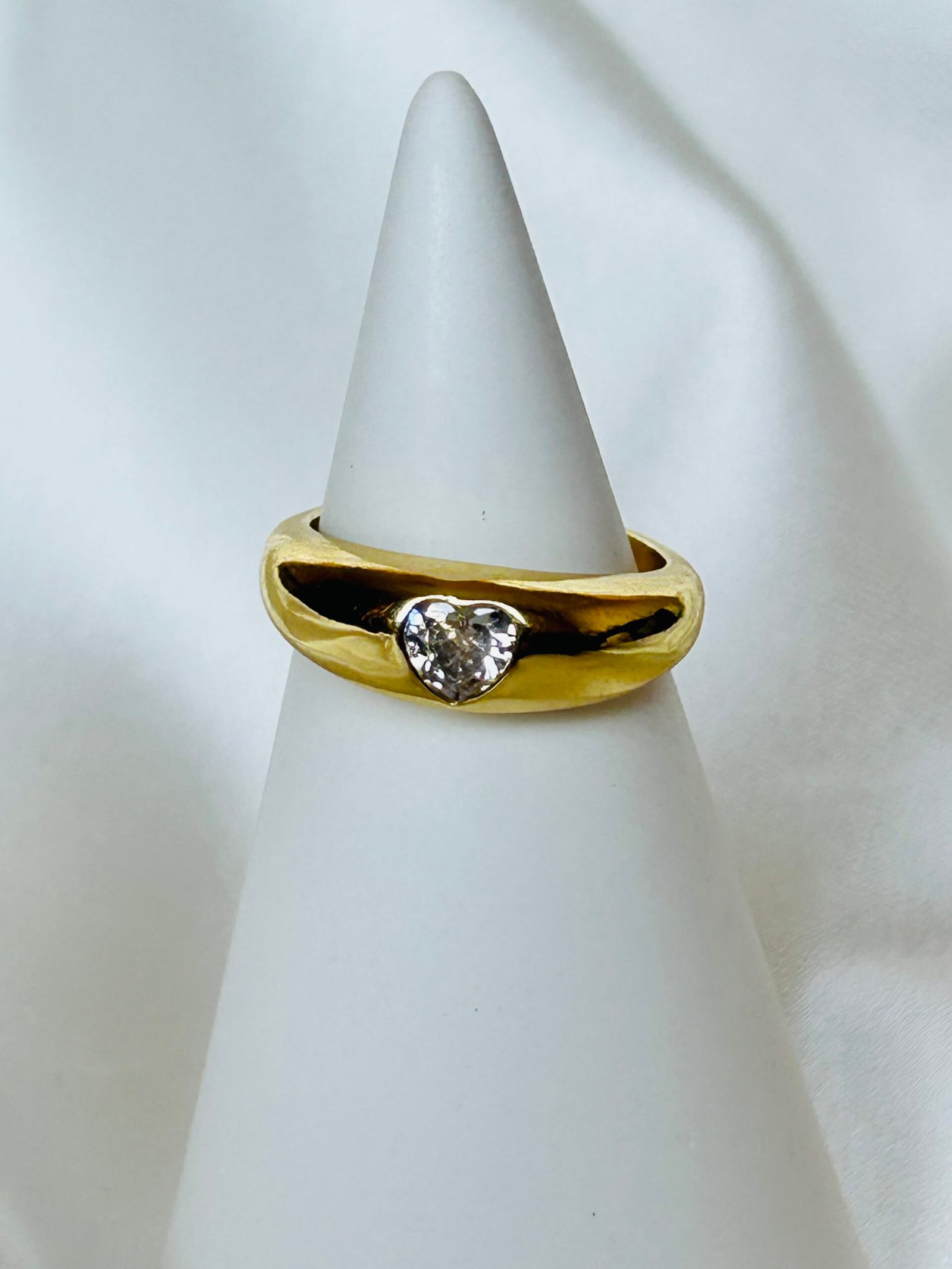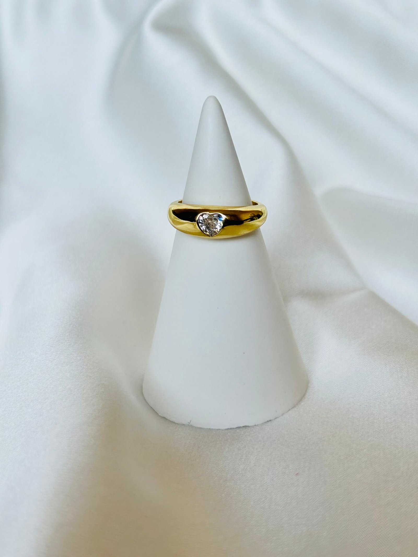 Bombeli formuyla güçlü bir duruş sergileyen Arlena yüzük, merkezindeki kalp formlu taşıyla romantik bir dokunuş sunar.