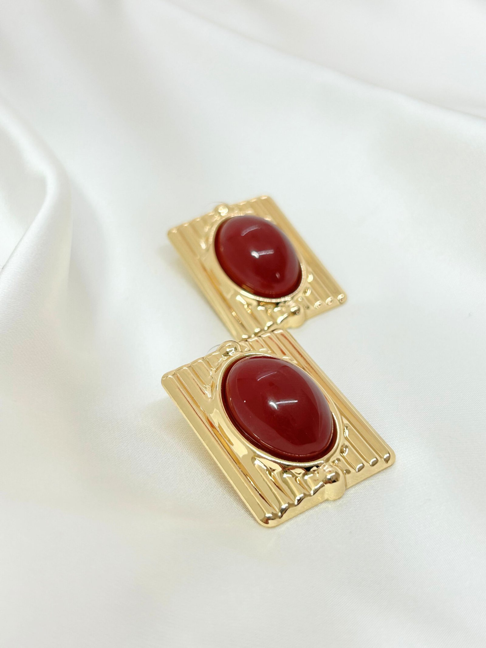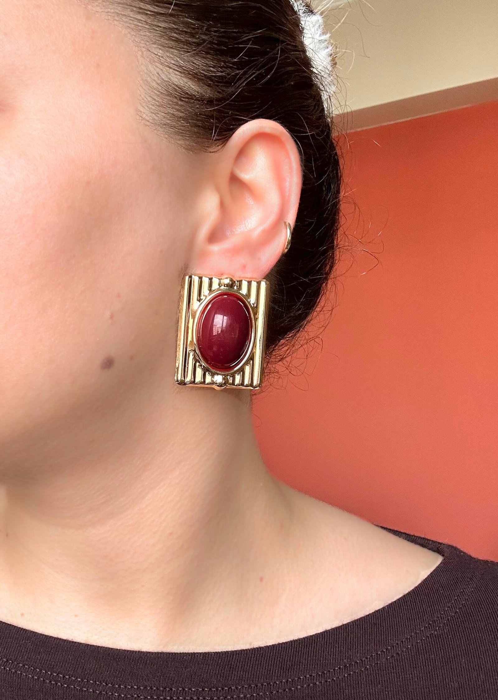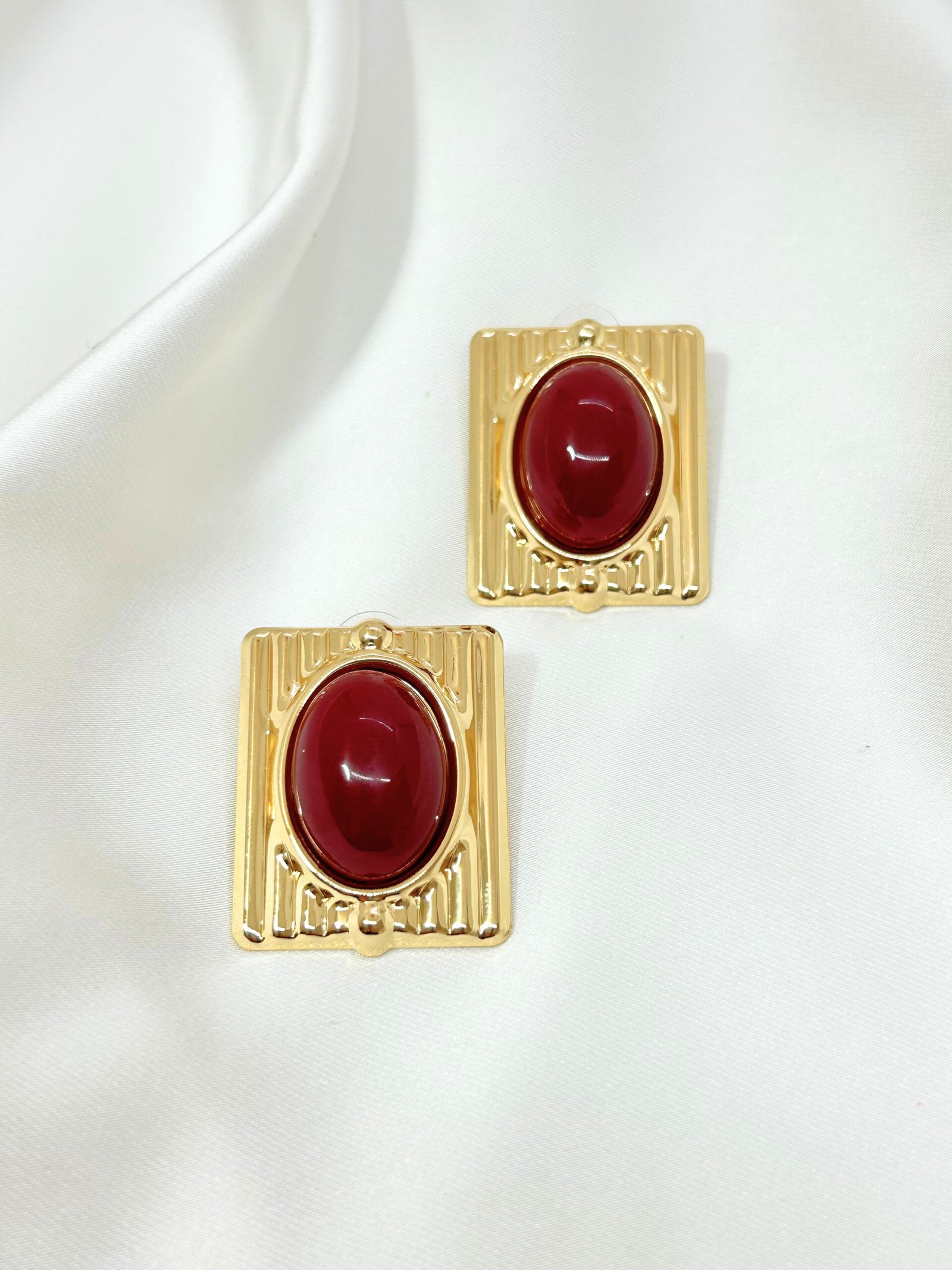 Gösterişli bir tasarıma sahip Belle Burgundy Küpe, sade şıklığa gösterişli bir hareket katar.