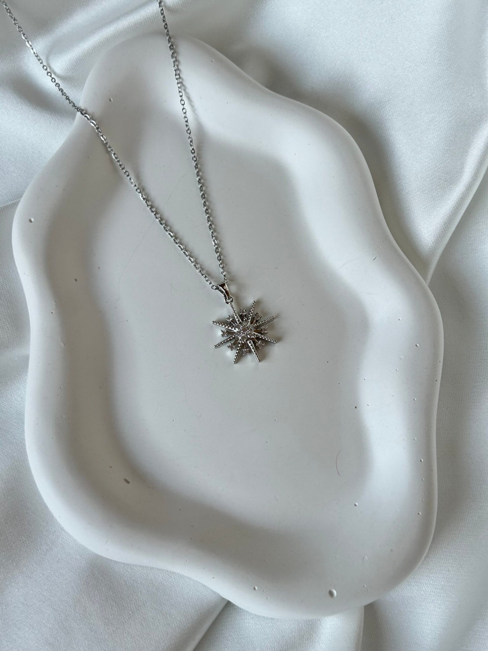 Işığı yumuşakça yansıtan formu ve dengeli tasarımıyla Ishtar kolye, boyunda sakin bir ışıltı bırakır.