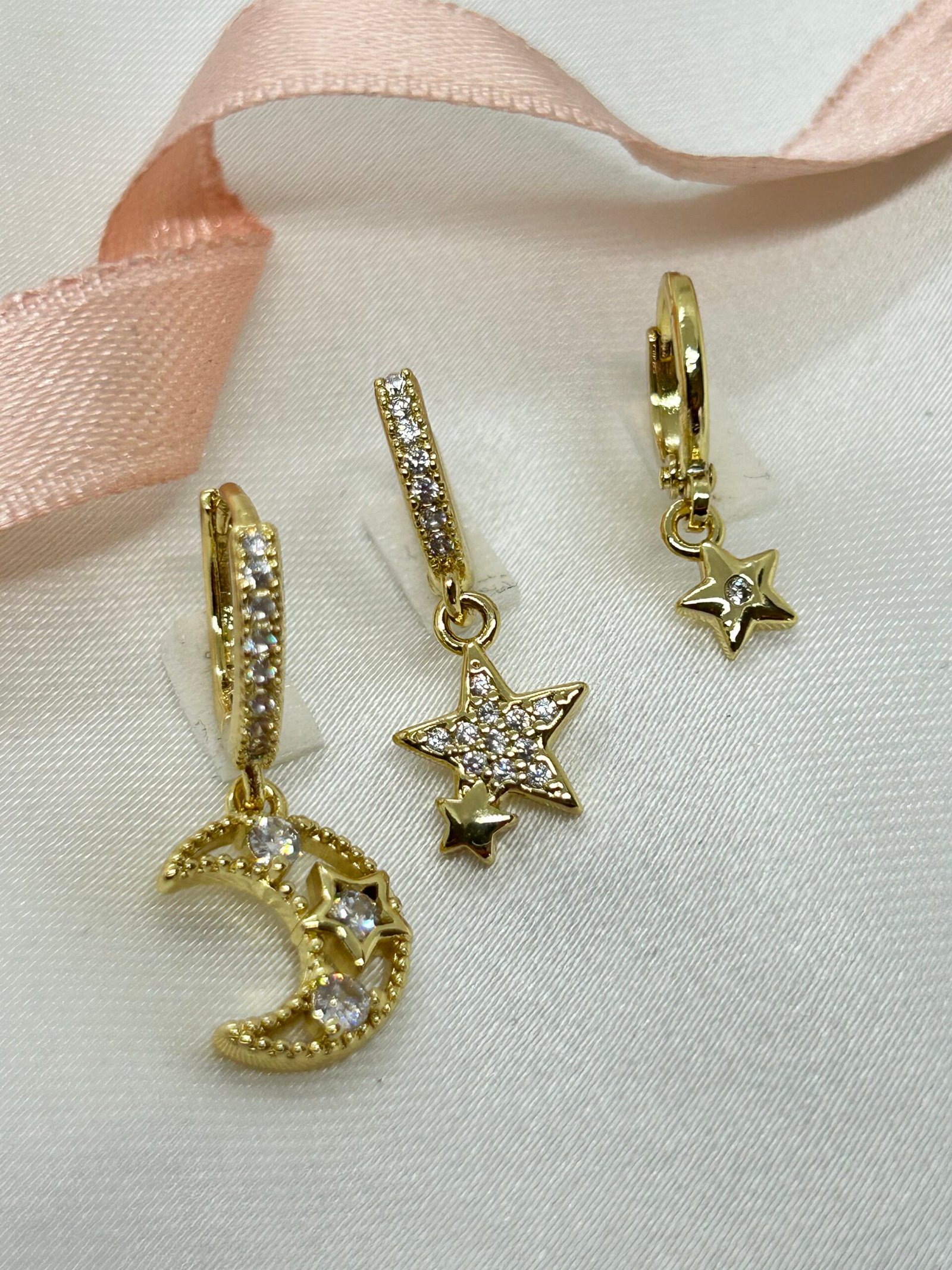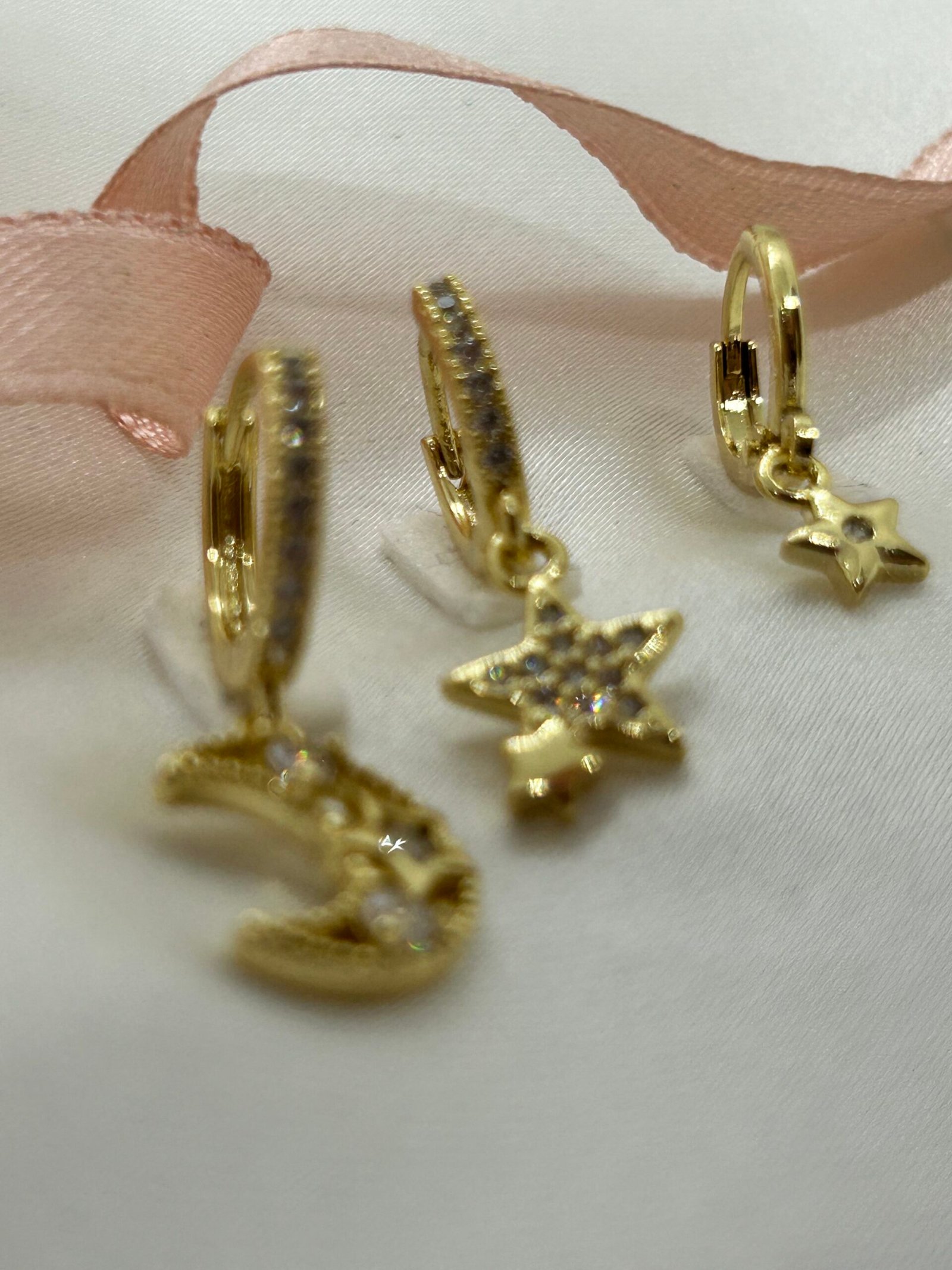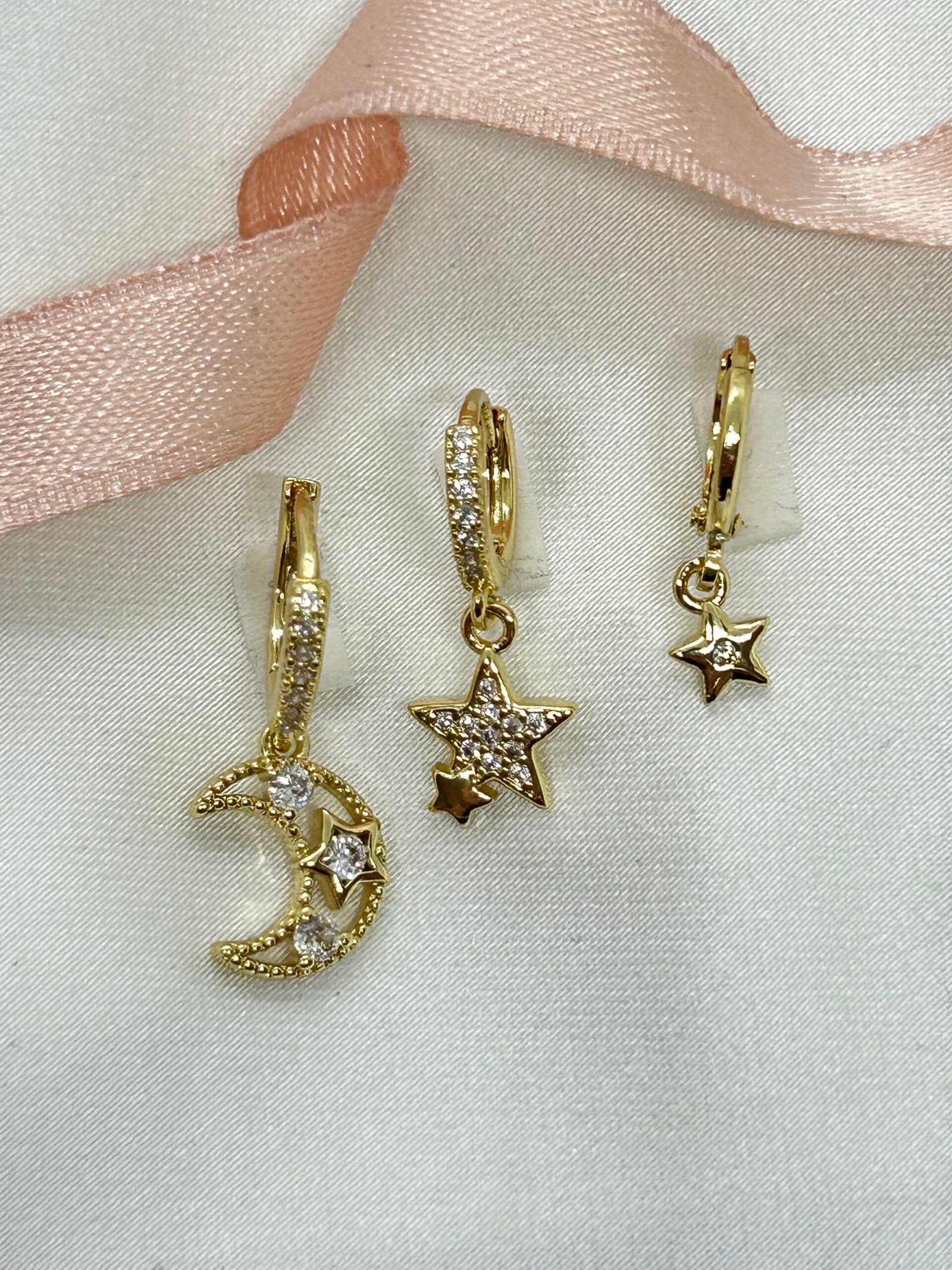 En Sevilenlerden Ay ve yıldız formuyla Moonstar Küpe, minimal tasarımı ve sallantılı yapısıyla zarif bir hareket sunar.