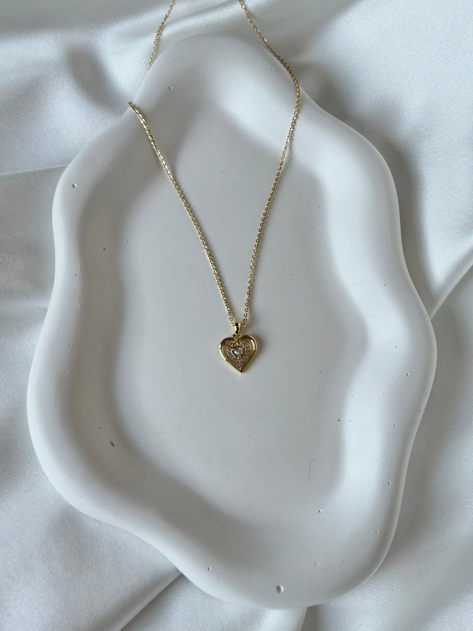 Işığı nazikçe yakalayan formu, boyunda sıcak ve romantik bir etki bırakır.
